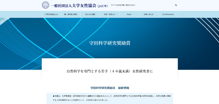 第26回 大学女性協会守田科学研究奨励賞の…