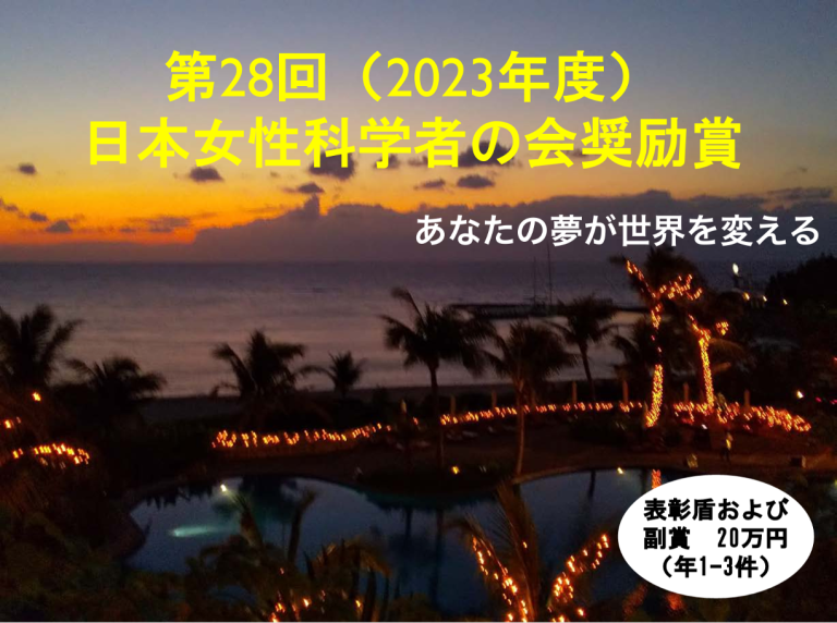 【公募】第28回(2023年度)日本女性科学者の会奨励賞(2022/11/20締切)