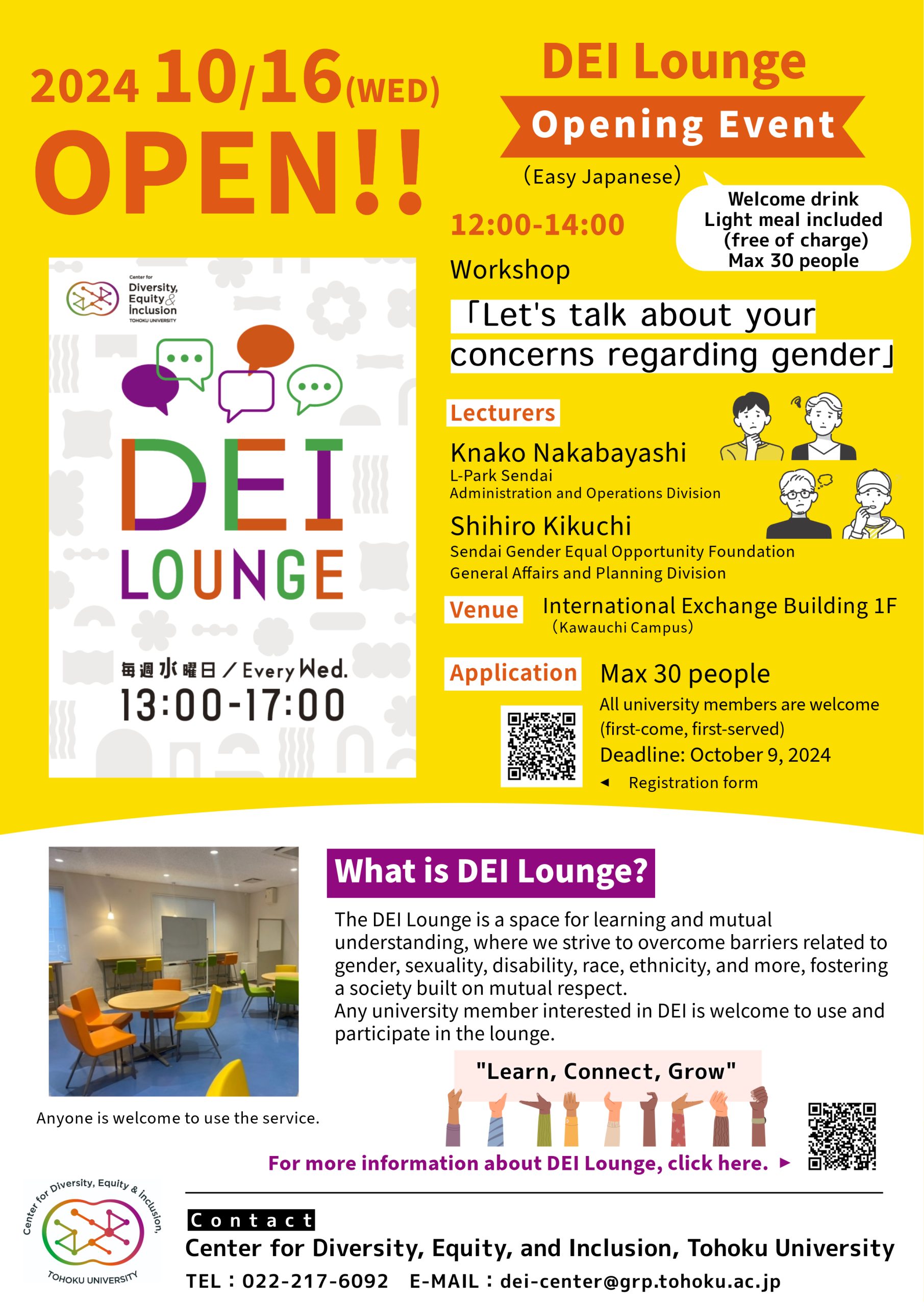 October 1, 2024 <Events>DEI Lounge Opening Event「Let’s talk about your concerns regarding gender」(2024/10/16) English ニュース