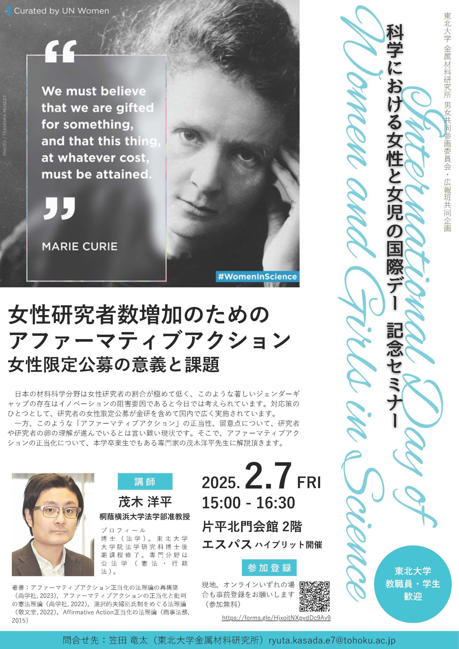 2025年2月4日 【イベント】女性研究者数増加のためのアファーマティブアクション 女性限定公募の意義と課題(2025/2/7 ハイブリッド開催) イベント イベント , 一般 , 在学生 , 職員 , 教員
