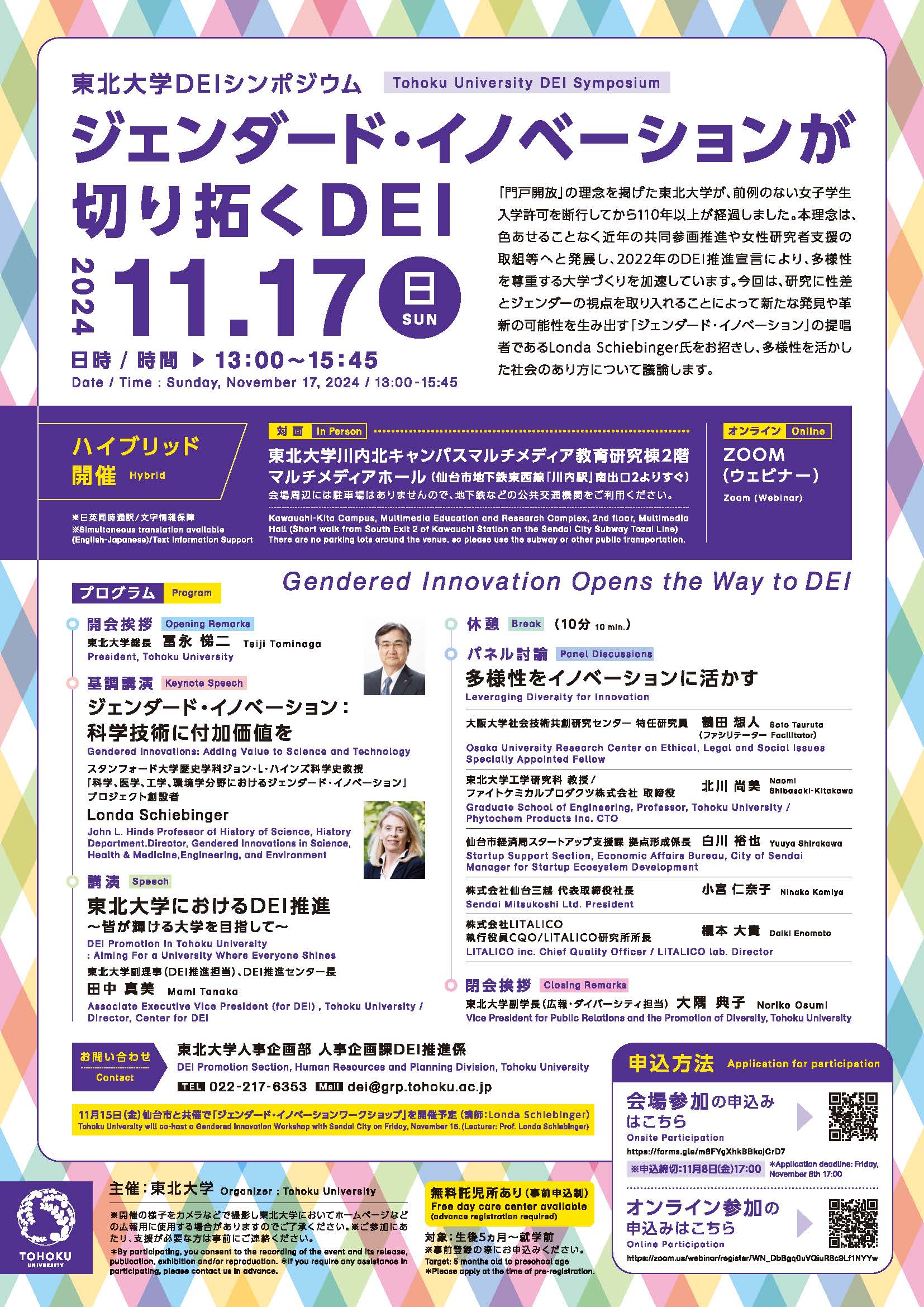2024年11月1日 【イベント】令和6年度IDE 東北支部セミナー 「女性と大学 ―その日本的特徴と未来への針路―」開催(2024/11/18開催) イベント 教員 , イベント , 一般 , 在学生 , 職員
