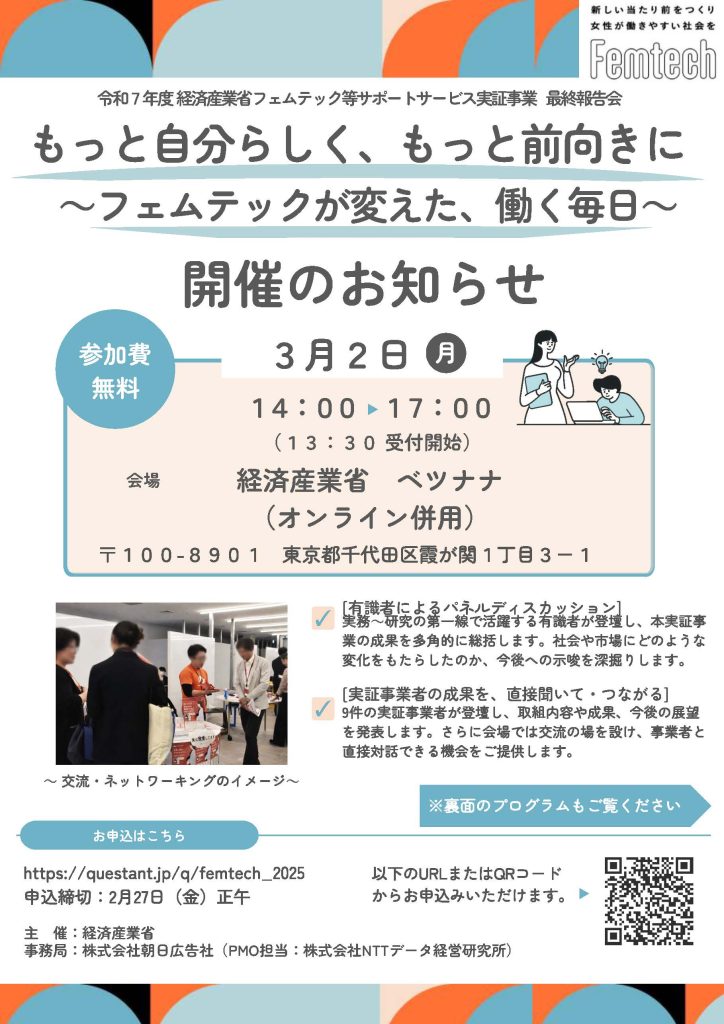 【イベント】もっと自分らしく、もっと前向きに~フェムテックが変えた、働く毎日~(2026/3/2 ハイブリッド開催)