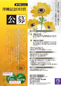 第16回 資生堂 女性研究者サイエンスグラントを、渡辺寛子助教(ニュートリノ科学研究センター)が受賞しました。受賞の対象となった研究業績は以下の通りです。 資生堂 女性研究者サイエンスグラント16回受賞 受賞者渡辺寛子助教(ニュートリノ科学研究センター)業績名【素粒子物理学/ニュートリノ実験】海洋底地球ニュートリノ観測による地球理解の新展開(海底での地球内放射性物質起源のニュートリノ観測を目指し地球内放射性熱量の理解を革新する)受賞時期2023年6月 詳細は、こちら(資生堂 Web)から。 渡辺寛子助教の研究者情報は、こちらから。 Share on X (Twitter) Share on Facebook Share on Line Share on メール Copy to Clipboard 前へ 投稿 【公募/締切延長】2023年度澤柳記念DEI賞(2023/7/24 正午締切) 次へ 投稿 【ご案内】朝日新聞に李 善姫 講師(男女共同参画推進センター)のインタビュー記事が掲載されました(2023/6/22掲載)