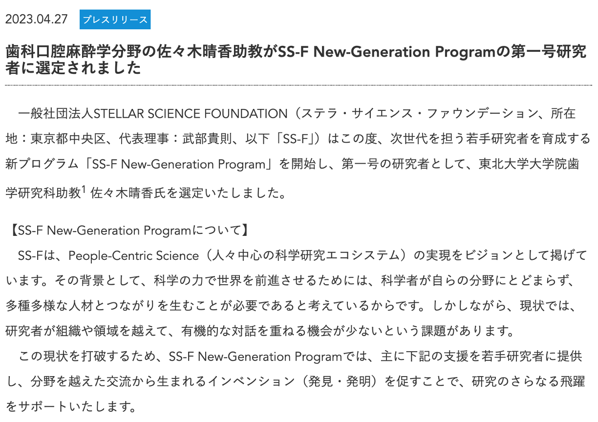 一覧 イベント ニュース 各種公募 お知らせ 2023年5月22日 【報告】米国科学技術政策局副局長らが本学を訪問しました(SAが出席しました) ニュース SA , 活動報告 2023年5月1日 【ご案内】朝日新聞に田中真美 男女共同参画推進センター長のコメントが掲載されました(2023/4/30掲載) ニュース 2023年4月28日 【ご案内】佐々木晴香助教(歯学研究科)がSS-F New-Generation Programの第一号研究者に選定されました ニュース 2023年4月26日 【ご案内】 就職ウォーカーNet「理系女子限定インターンシップ&業界・企業研究WEBセミナー」(2023/6/4オンライン開催) ニュース 2023年4月14日 【報告】文部科学省「ダイバーシティ研究環境実現イニシアティブ(特色型)」の事後評価で「総合A評価」を受けました ニュース 広報 2023年4月14日 【ご案内】性の多様性・社会イノベーションセミナー「多様な性のあり方・SOGIを自分事として考えるにはー地域の視点から考えるー」(2023/4/26 開催) ニュース 2023年4月12日 【ご案内】軽症病児・病後児保育室 星の子ルーム「星の子だより第41号」 ニュース 2023年4月11日 【受賞】本学女性研究者(23年度離任者も含む)が令和5年度科学技術分野の文部科学大臣表彰(若手科学者賞)を受賞 ニュース 2023年4月10日 【受賞】小林朋子准教授(東北メディカル・メガバンク機構)が令和5年度科学技術分野の文部科学大臣表彰(理解増進部門)を受賞 ニュース 2023年4月7日 【ご案内】東北大学文系女子学生100周年サイトが公開されました ニュース 2023年3月31日 【報告】東北大学 みんなが主役 多様な性に関するガイドライン ニュース 広報 2023年3月29日 【報告】令和3年度「多様な性をとりまく現状に関するアンケート」の結果報告 ニュース 広報 , 活動報告 前へ1 … 11 12 13 14 15 16 17 … 21次へ