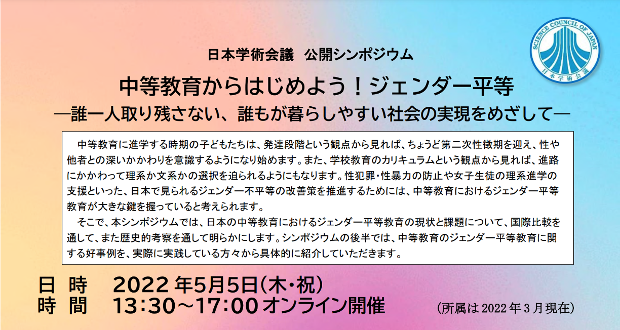 一覧 イベント ニュース 各種公募 お知らせ 2022年4月27日 【受賞】大隅典子男女共同参画委員会委員長と田中真美センター長が令和4年度科学技術分野の文部科学大臣表彰(理解増進部門)を受賞 ニュース 2022年4月22日 【報告】第21回 TUMUG Online Lunch Meeting(2022/3/8 オンライン開催) ニュース 2022年4月19日 【ご案内】朝日新聞に奥山純子助教が関わっている実証事業について掲載されました。(2022/4/10掲載) ニュース 2022年4月15日 【ご案内】公開シンポジウム「中等教育からはじめよう!ジェンダー平等 ―誰一人取り残さない、誰もが暮らしやすい社会の実現をめざして―」(2022/5/5 オンライン開催) ニュース 2022年4月13日 【ご案内】東北大学男女共同参画推進センターに李善姫講師が着任しました。 ニュース 2022年4月13日 【ご案内】軽症病児・病後児保育室 星の子ルーム「星の子だより第40号」 ニュース 2022年4月12日 【ご案内】小谷元子理事・副学長が外務大臣次席科学技術顧問となりました。 ニュース 2018年4月13日 【受賞】全学教育科目「ジェンダーと人間社会」関係教員が平成29年度 東北大学総長教育賞受賞 ニュース 前へ1 … 18 19 20 21
