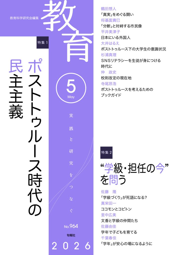 教育科学研究会 月刊誌『教育』5月号(4月10日発行)の特集「ポストトゥルース時代の民主主義」に、鶴田想人特任助教(研究)による論考「『真実』をめぐる闘い──ポストトゥルースと教育の課題」が掲載されました。ぜひご覧ください。
