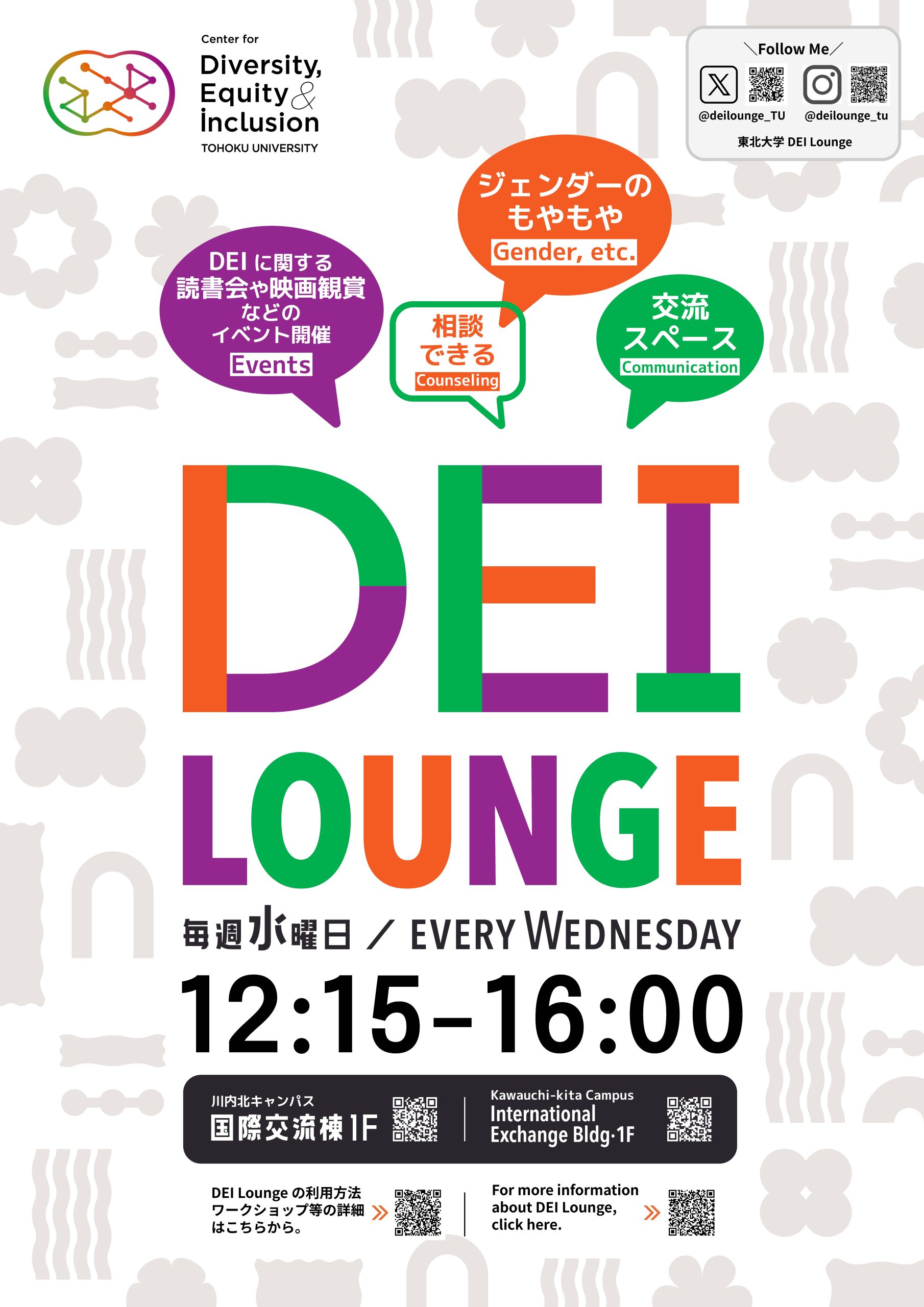 2026年4月14日 【ご案内】2026年度「DEI Lounge」オープンのお知らせ(4/15(水)より毎週水曜日) NEWS & TOPICS, ニュース, お知らせ 広報 , 教員 , 在学生 , 職員