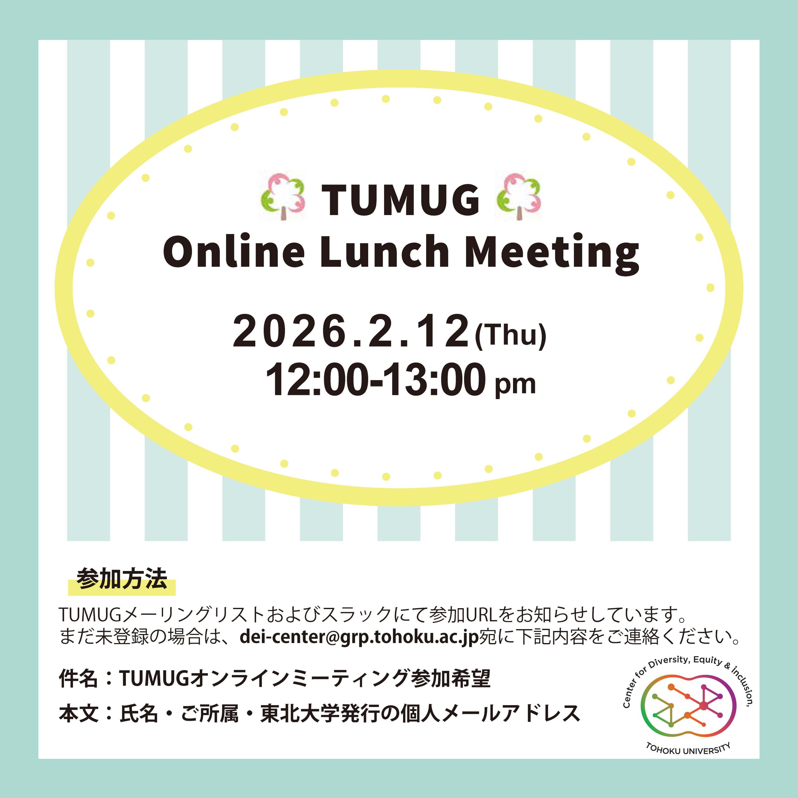 2026年2月2日 【センターイベント】第41回 TUMUG Online Lunch Meeting(2026/2/12(木) オンライン開催) イベント 教員 , イベント , 在学生 , 職員 , センターイベント