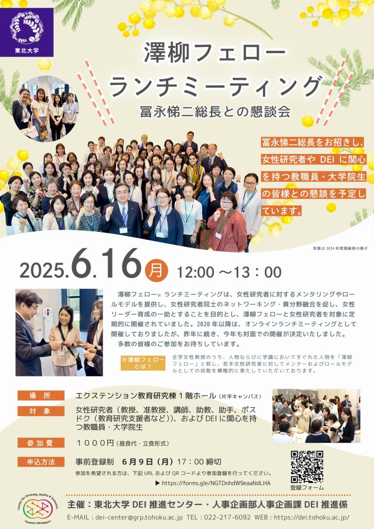 December 16, 2024Englishニュース[Cooperation Request] Ongoing! Tohoku University DEI Large-Scale Survey (Until January 31, 2025)
